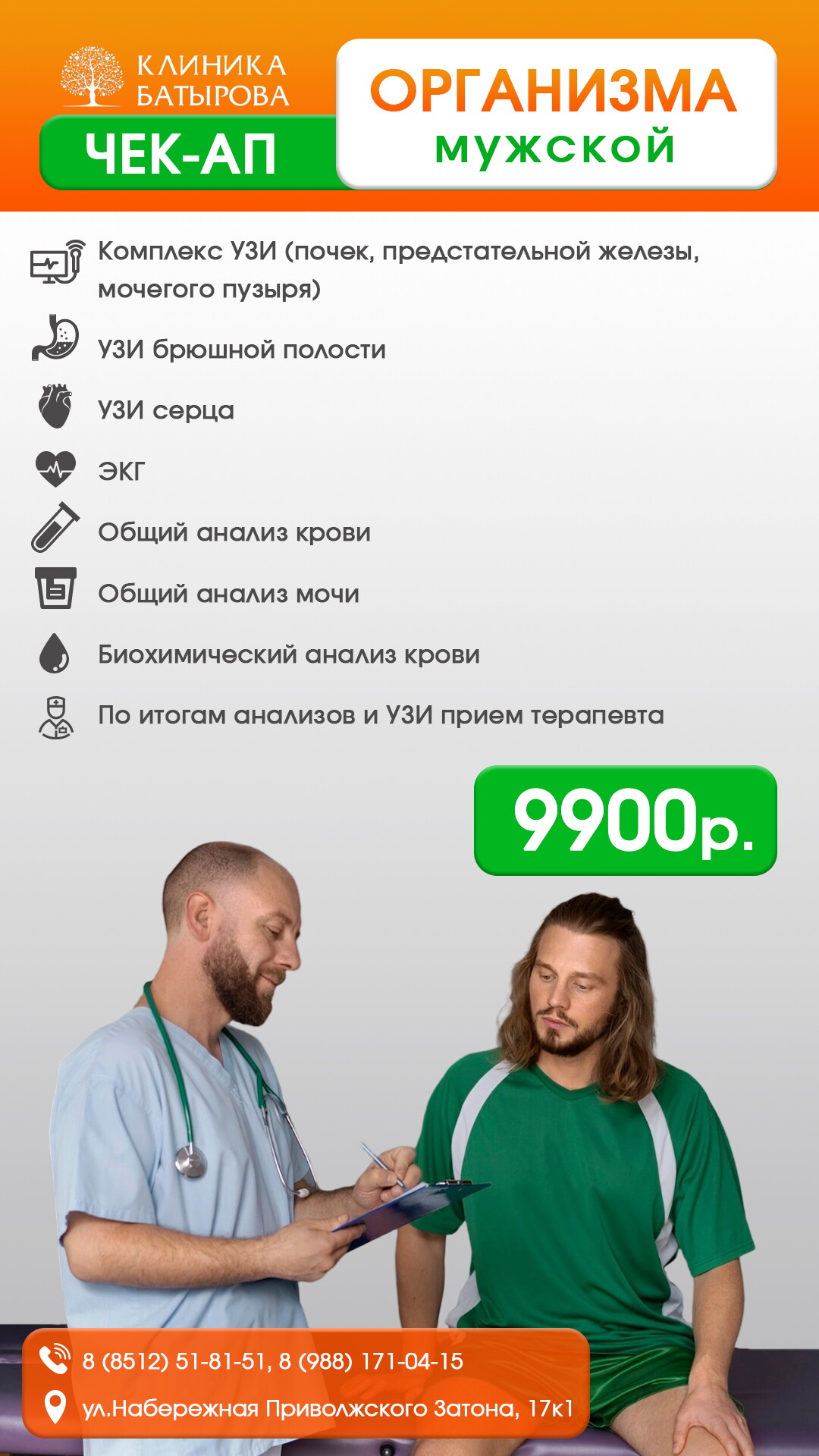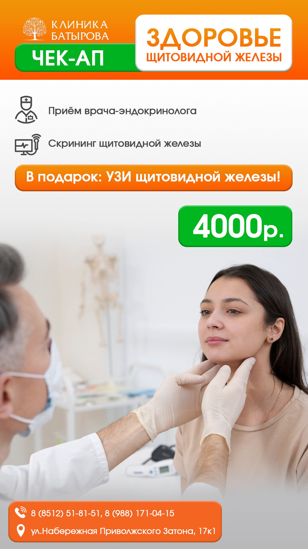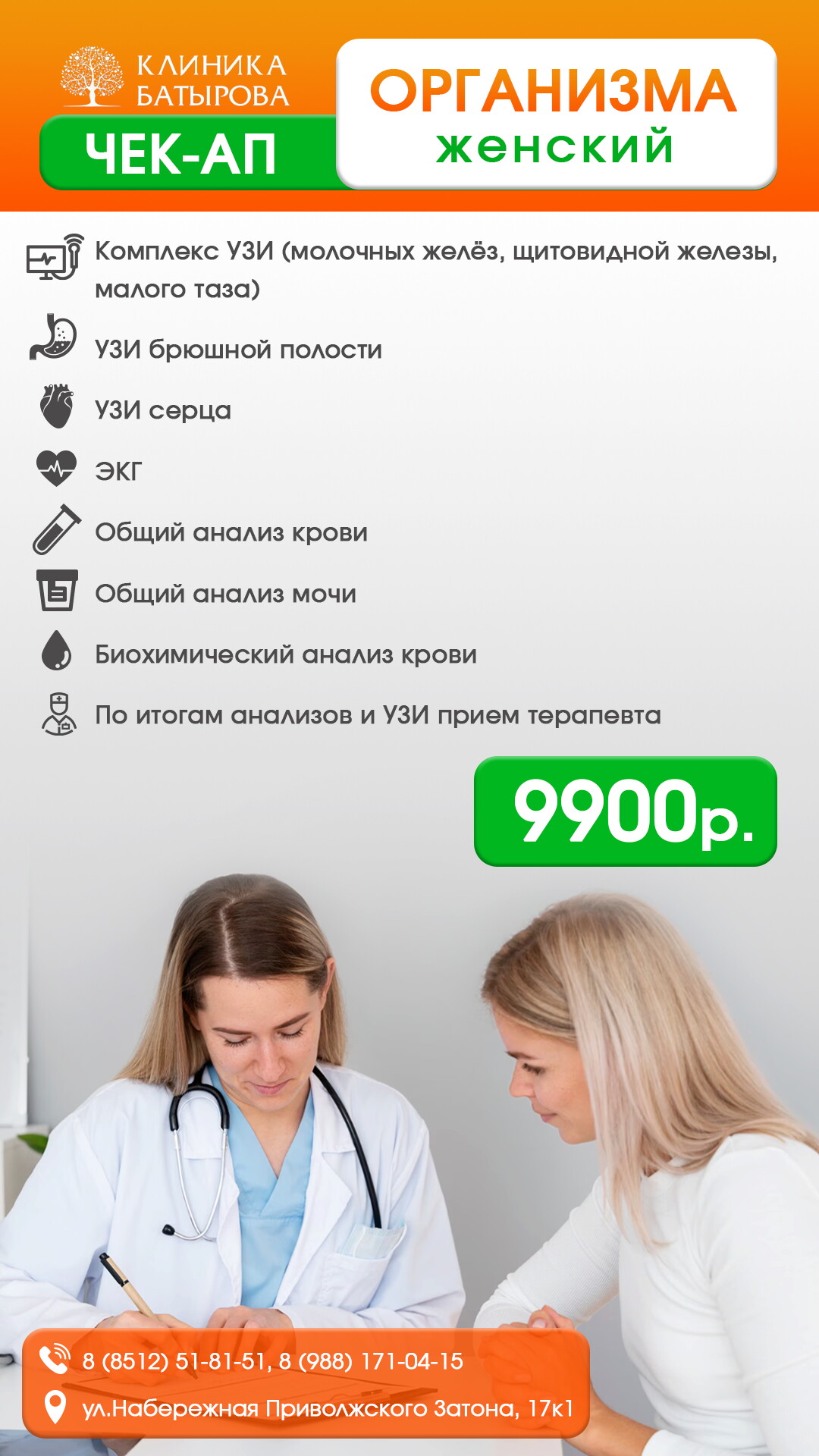 Клиника Батырова - это учреждение широкого профиля, предлагающее специально подобранный комплекс процедур и услуг для каждого клиента. В клинике всё организовано с учетом максимального комфорта для посетителей. Оборудование кабинетов позволяет провести диагностические исследования организма пациента для составления программы лечения и профилактических мероприятий. В клинике работают отделения общей терапии, кардиологии, гастроэнтерологии, неврологии, эндокринологии, дерматологии, урологии, гинекологии, маммологии, онкологии, педиатрии, неонатологии. Наши специалисты имеют высокую квалификацию и с пониманием отнесутся к вашим проблемам. Доверяя свое лечение нам, вы можете быть уверены в результате.