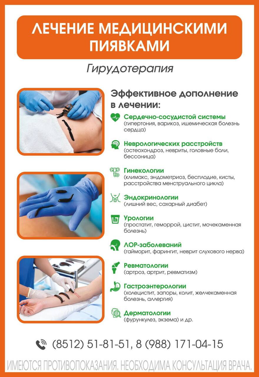 Среди предлагаемых процедур вы можете выбрать физиотерапию, гирудотерапию. Здесь же работает лаборатория.